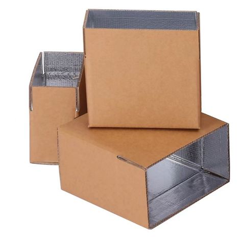 Cartón de cartón móvil en frío fresco, papel de aluminio, espuma, embalaje térmico, caja de envío, papel mate aislado, Impresión de cartón